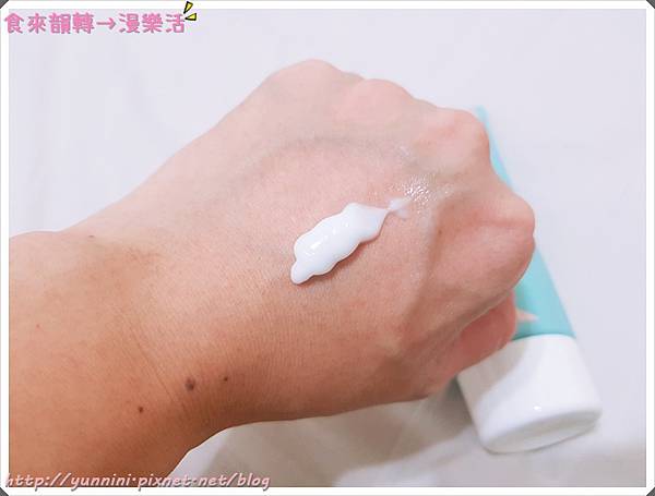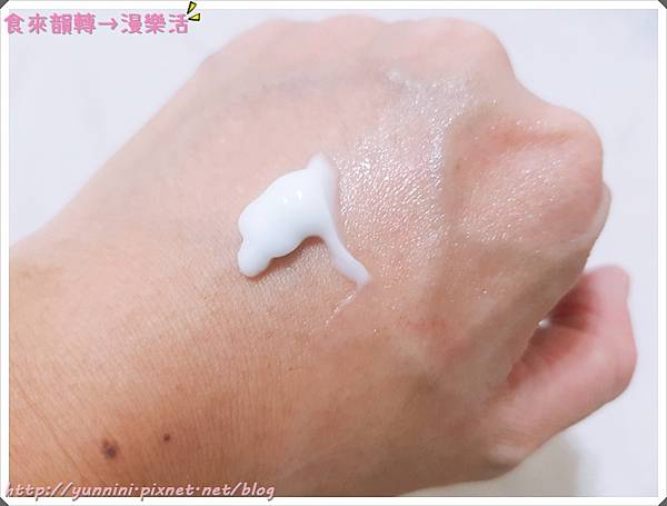 輕輕地推開柔軟的妊娠霜,唉呦~很水很潤耶~有種滋潤感在肌膚上,下圖可以看到推開的地方水潤感立現啊!