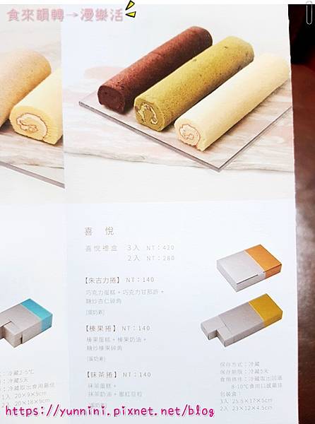 一盒打開後有一份型錄,還有兩個包裝的單塊蛋糕捲,跟一盒迷你蛋糕捲跟蛋糕。