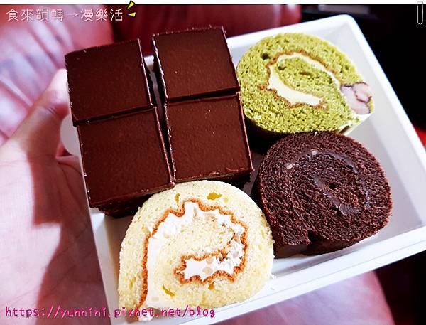 一盒迷你蛋糕捲口味是抹茶捲、榛果捲跟朱古力捲,口味上吃起來我個人認為普通耶~稍微偏乾了點,老公試吃也覺得還好,就直接刪除了!哈哈