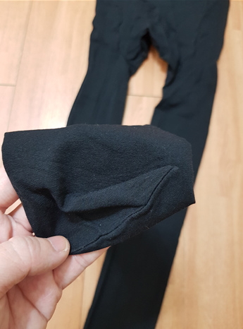 90D的孕婦褲襪在褲襠的地方做得比較厚一點點,下圖就可以看出來了。